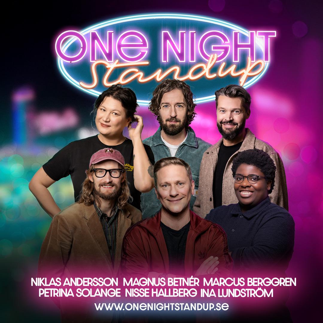 Efter succén 2023 kommer “One Night Standup” tillbaka. Återigen slår sex av Sveriges främsta ståuppkomiker sina påsar ihop och åker ut på gemensam turné. Årets uppställning består av Petrina Solange, Marcus Berggren, Nisse Hallberg, Magnus Betnér, Ina Lundström och Niklas Andersson. Under höstens allra mörkaste veckor åker det nya drömlaget land och rike runt för att ge publiken en ordentlig vitamininjektion.